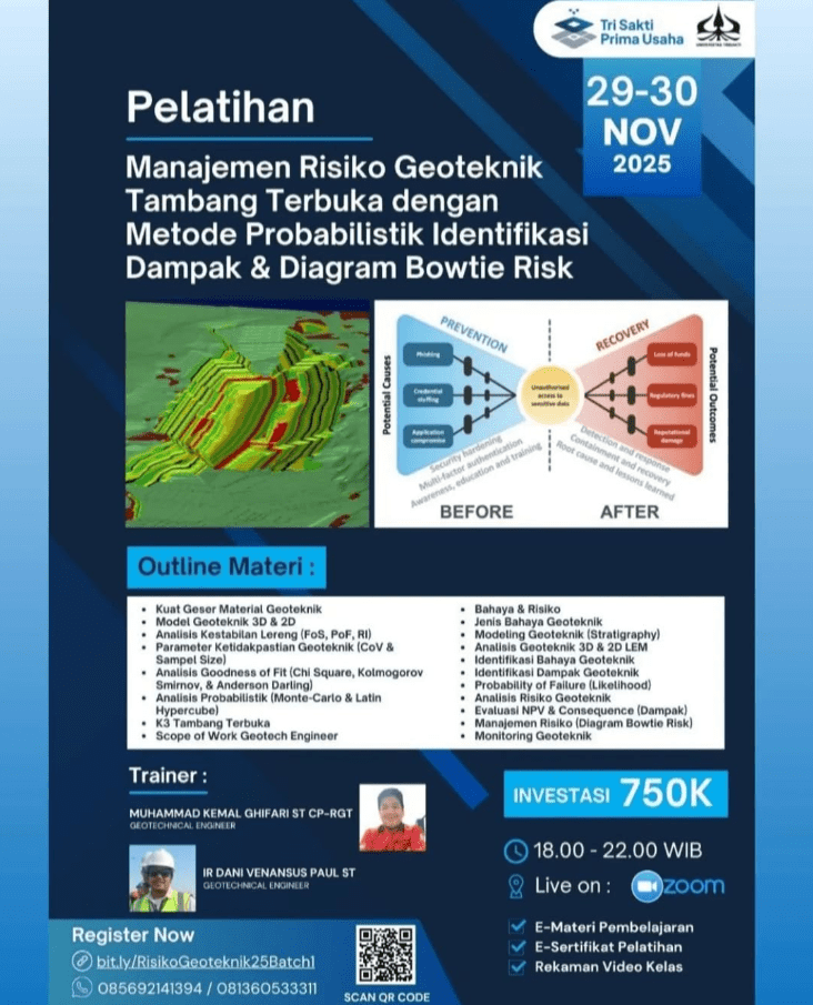 PELATIHAN MANAJEMEN RISIKO GEOTEKNIK TAMBANG TERBUKA DENGAN METODE PROBABILISTIK IDENTIFIKASI DAMPAK & DIAGRAM BOWTIE RISK