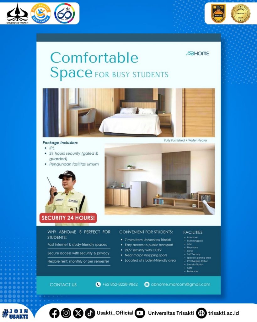 Cari tempat tinggal yang tenang, strategis, dan lengkap buat kuliah di Trisakti?