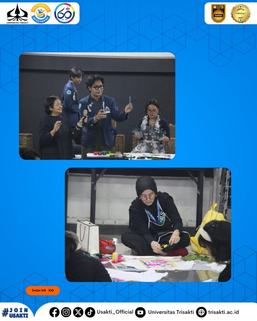Jakarta, 10 Oktober 2025 — Bimbingan Kreatif (BIMKRAF) 2025 dari Fakultas Seni Rupa dan Desain (FSRD) Universitas Trisakti kembali menggelar kegiatan kreatif yang penuh inspirasi. Workshop kedua kali ini bertema “SAMAan (Sablon Bersama Teman)”, sebuah ajang eksplorasi teknik natural printing dengan menggunakan bahan-bahan dari alam seperti daun dan bunga sebagai media cetak. 🌿