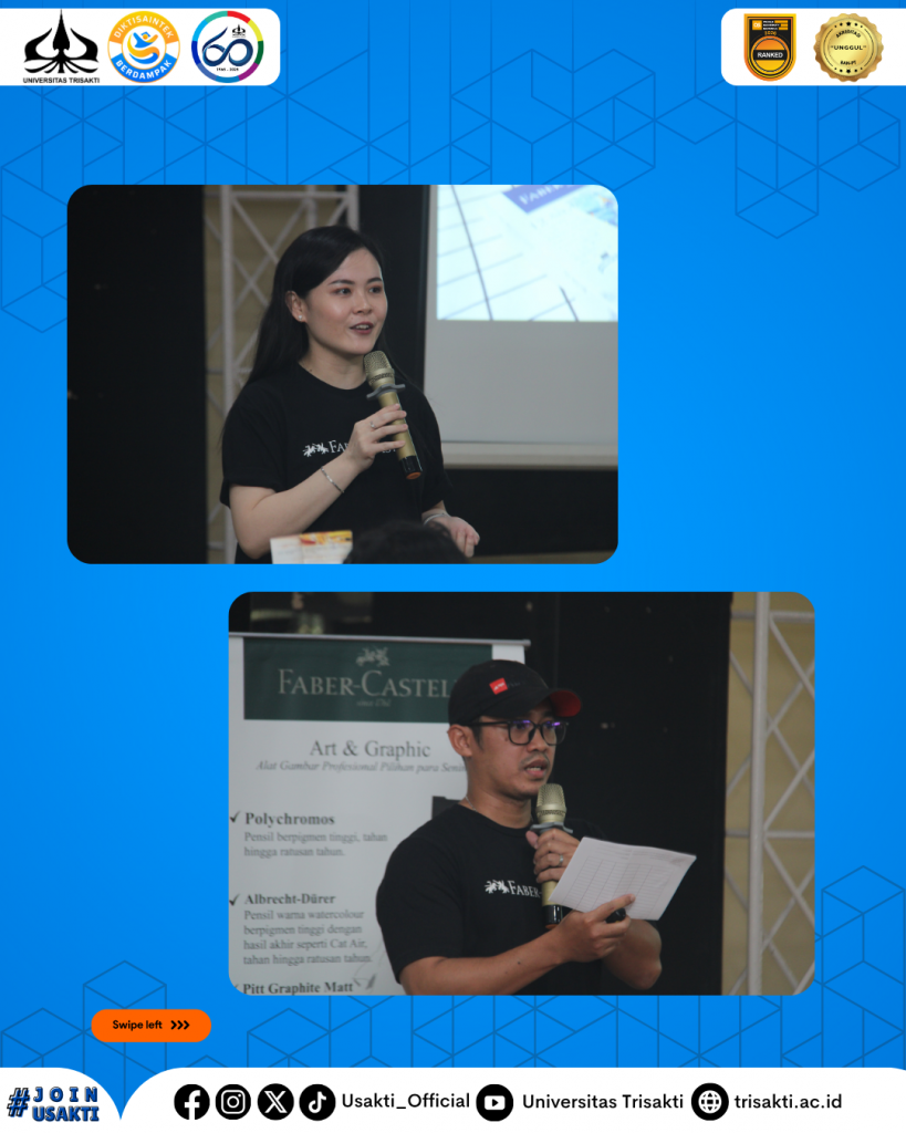 Acara yang dilaksanakan di Gallery R Universitas Trisakti dibuka oleh Wakil Dekan IV FSRD Universitas Trisakti, Ibu Anita Armas, S.Sn., M.Ds. Dalam sambutannya, beliau menyampaikan apresiasi terhadap inisiatif Faber-Castell dalam mendukung perkembangan seni rupa di kalangan generasi muda.