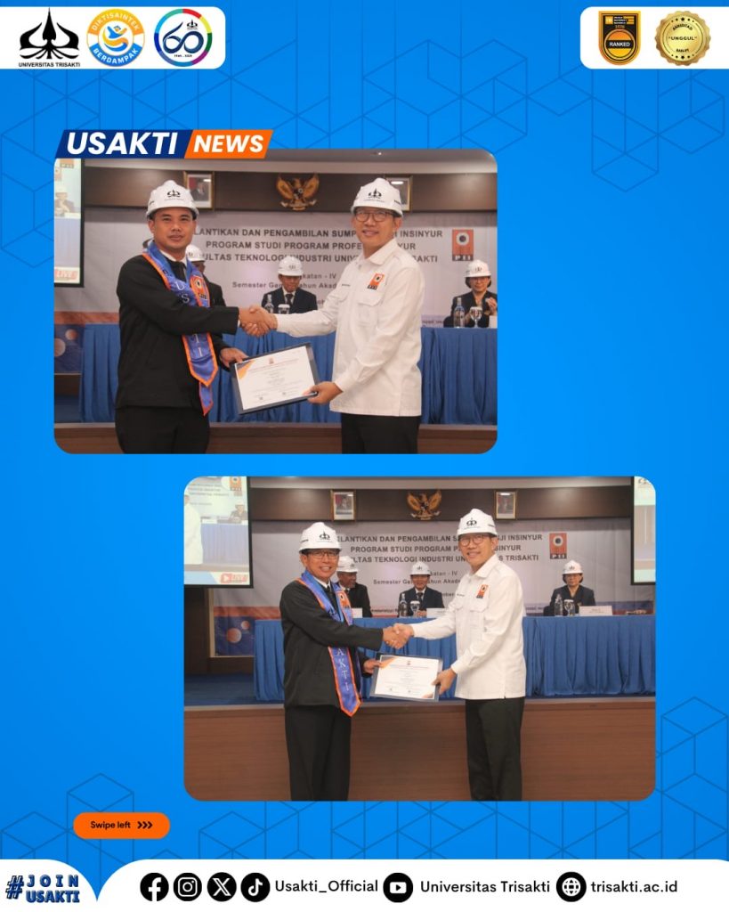 Jakarta, 15 Oktober 2025 — Fakultas Teknologi Industri Universitas Trisakti (FTI Usakti) menggelar acara Pelantikan dan Pengambilan Sumpah/Janji Insinyur bagi peserta Program Studi Program Profesi Insinyur (PSPPI) Angkatan-IV Semester Genap Tahun Akademik 2024/2025. Acara yang berlangsung pada Rabu, 15 Oktober 2025 ini menjadi momen bersejarah bagi 55 insinyur baru yang telah resmi menyandang gelar Insinyur dan siap berkontribusi bagi kemajuan bangsa.