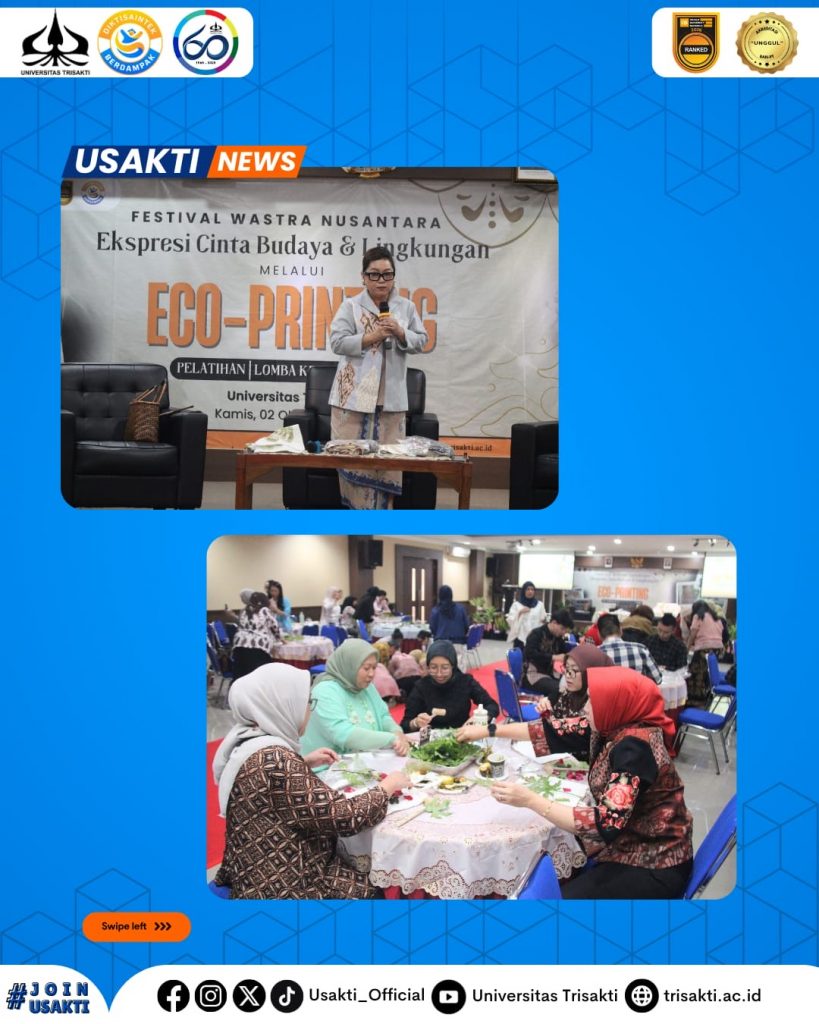 Jakarta – Dalam rangka memperingati Hari Batik Nasional, Universitas Trisakti mempersembahkan Festival Wastra Nusantara dengan menghadirkan kegiatan Pelatihan dan Lomba Kreasi Berkain yang mengusung tema “Ekspresi Cinta Budaya & Lingkungan melalui Eco-Printing”. Acara ini diselenggarakan pada Kamis, 2 Oktober 2025, pukul 09.00 – 12.00 WIB di Ruang Auditorium Lantai 8, Gedung F-G, FTI, Kampus A Universitas Trisakti.
