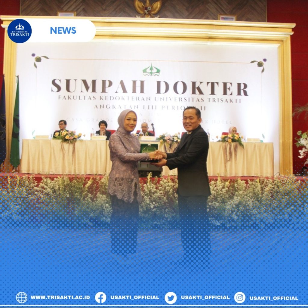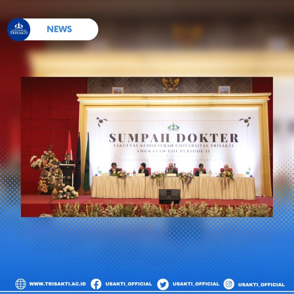 Fakultas Kedokteran Universitas Trisakti telah mengadakan Acara Pengambilan Sumpah Dokter Baru Angkatan LIII Periode II Tahun 2023 yang diadakan secara Luring pada hari Kamis, 11 Mei 2023 di Merlynn Park Hotel Jakarta.