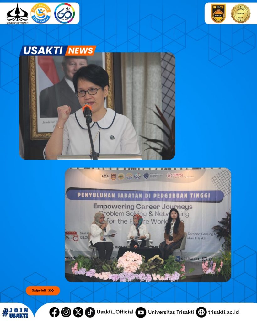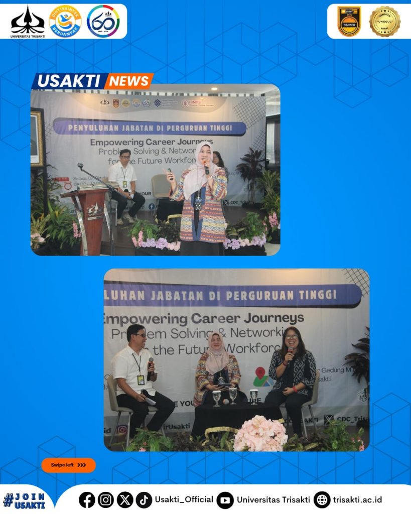 Jakarta, 7 Oktober 2025 — Pusat Karir Universitas Trisakti bekerja sama dengan Kementerian Ketenagakerjaan Republik Indonesia (KEMENAKER RI) dan Himpunan Psikologi Indonesia (HIMPSI) menyelenggarakan kegiatan Seminar Penyuluhan Jabatan di Perguruan Tinggi bertajuk “Empowering Career Journeys: Problem Solving & Networking for the Future Workforce”.